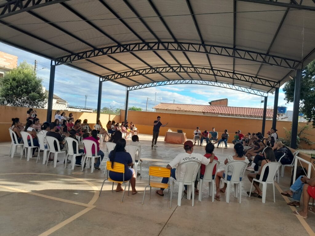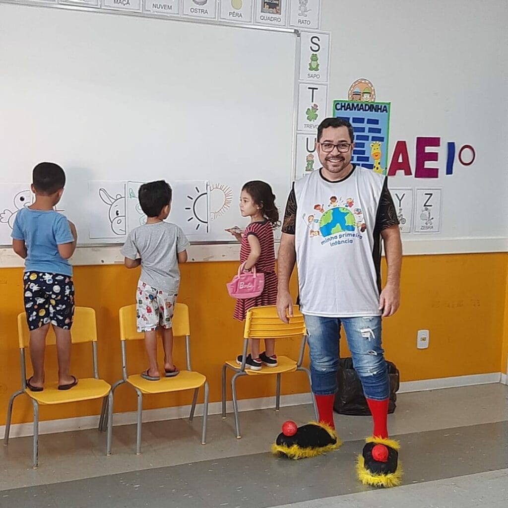 Em abril, o oficineiro Marcos realizou uma atividade com os pais sobre a importância da expressão corporal e do movimento para crianças na primeira infância, na CMEI Lázaro Pinto Marra, em Catalão. A atividade contou com a participação de 63 familiares.