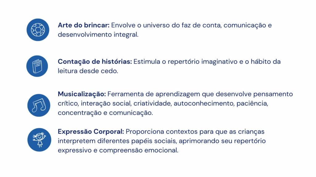 Essa estrutura visa garantir uma experiência completa e significativa, promovendo o bem-estar emocional e o desenvolvimento integral das crianças.